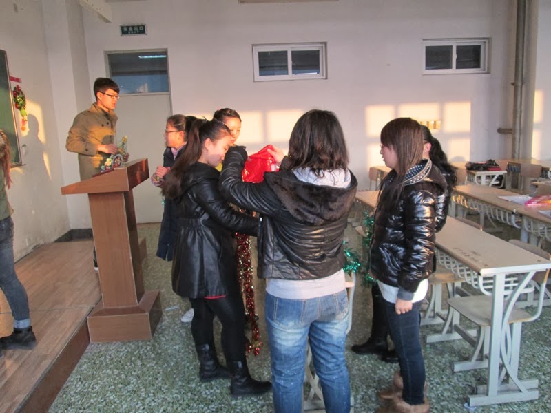The best part of this whole month has been the celebration of Christmas with my students. Similar to last year, I got to share my culture with the students by turning one of our class meetings into a Christmas party. I brought in decorations for the students to hang and they did a great job making the classroom look festive. I also brought my guitar and I taught them some traditional Christmas carols. We sang Jingle Bells, Rudolf the Red-Noised Reindeer and I Heard the Bells on Christmas Day. We played musical chairs, had a gift exchange, as well as other fun games. The students really loved this time to celebrate. I lectured a little bit about Christmas traditions but mostly we just had fun. Subsequently, many of the students have asked to spend more time with me outside of the classroom. I’m happy to accept their invitations. Thus our Christmas celebration would continue into dinners together. Several of my students treated me to a nice traditional Chinese dinner at a local restaurant. The restaurant is a small hole-in-the-wall but the food is great. I wish I knew of this place earlier in the semester. I have a feeling I will be visiting here more often.